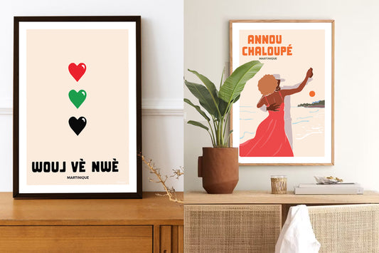 Iouana est un concept d'affiches colorées en créole qui apporte la vibe de la culture caribéenne dans nos intérieurs. L'objectif est de faire vibrer nos murs avec des illustrations qui nous rappellent tout ce que l'on aime dans notre quotidien caribéen : nos sons, nos danses, nos yoles, nos pêcheurs, nos fleurs, les petits proverbes de nos mamies... et bien sûr, notre créole !